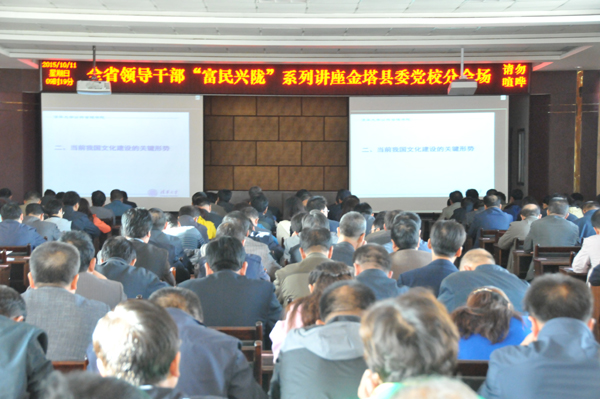 10月11日上午,全省领导干部“富民兴陇”系列讲座2015年第九讲在甘肃省委党校举行。清华大学公共管理学院副院长、博士生导师杨永恒教授受邀作了《对我国文化建设的几点思考》的专题讲座,全县各乡镇、县委各部门、县属各单位科级干部共200余人在县委党校会议厅收听收看了讲座。